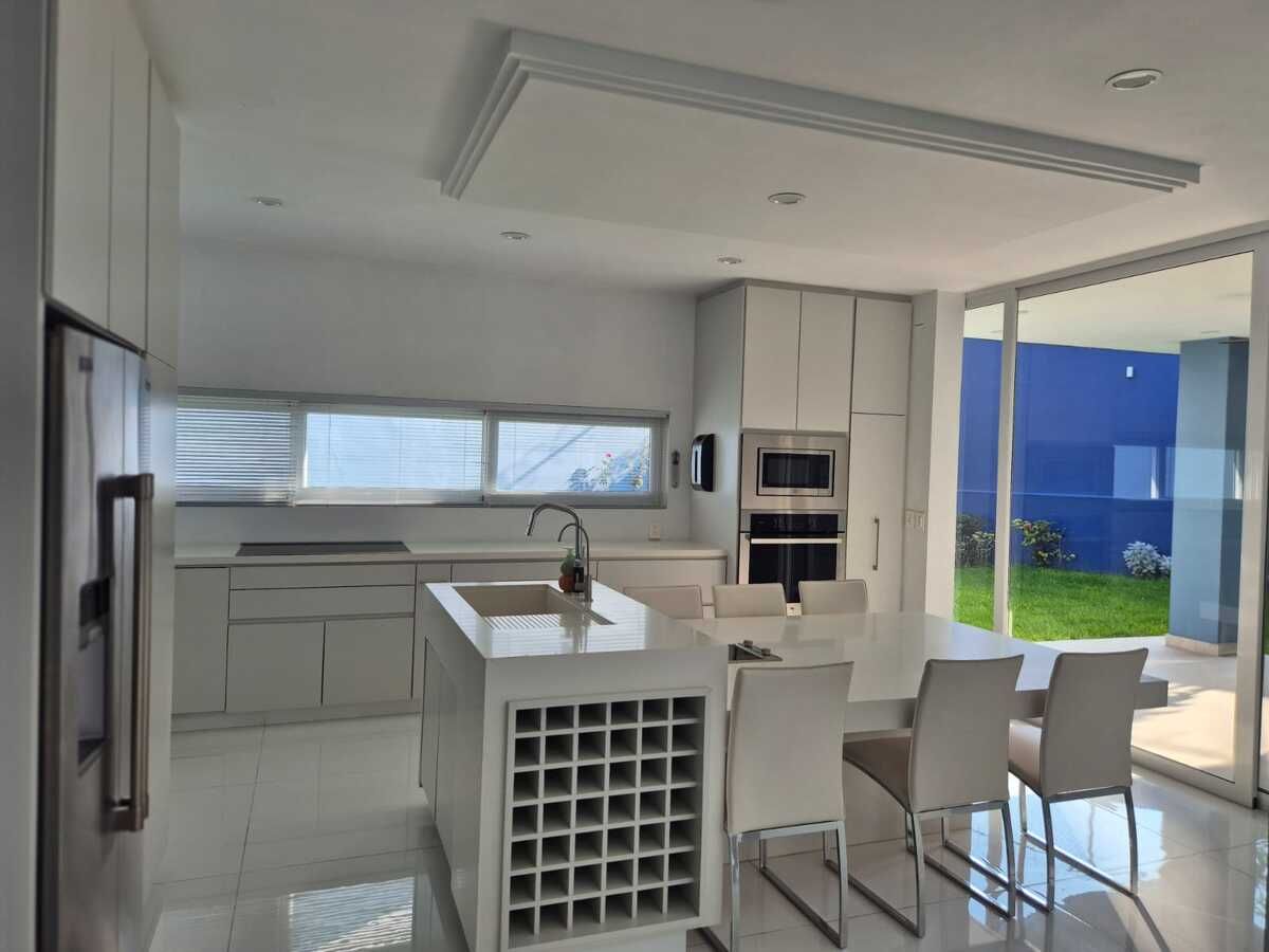 *En planta baja*, encontrarás un amplio espacio de cochera para *4 autos*, un lujo en zonas como esta. La cocina moderna y el comedor integrado crean un ambiente perfecto para disfrutar de las mejores cenas en familia. La *sala*, comedor y cocina con su vista hacia la terraza y jardín, invita a relajarte y disfrutar del aire libre sin salir de casa.
